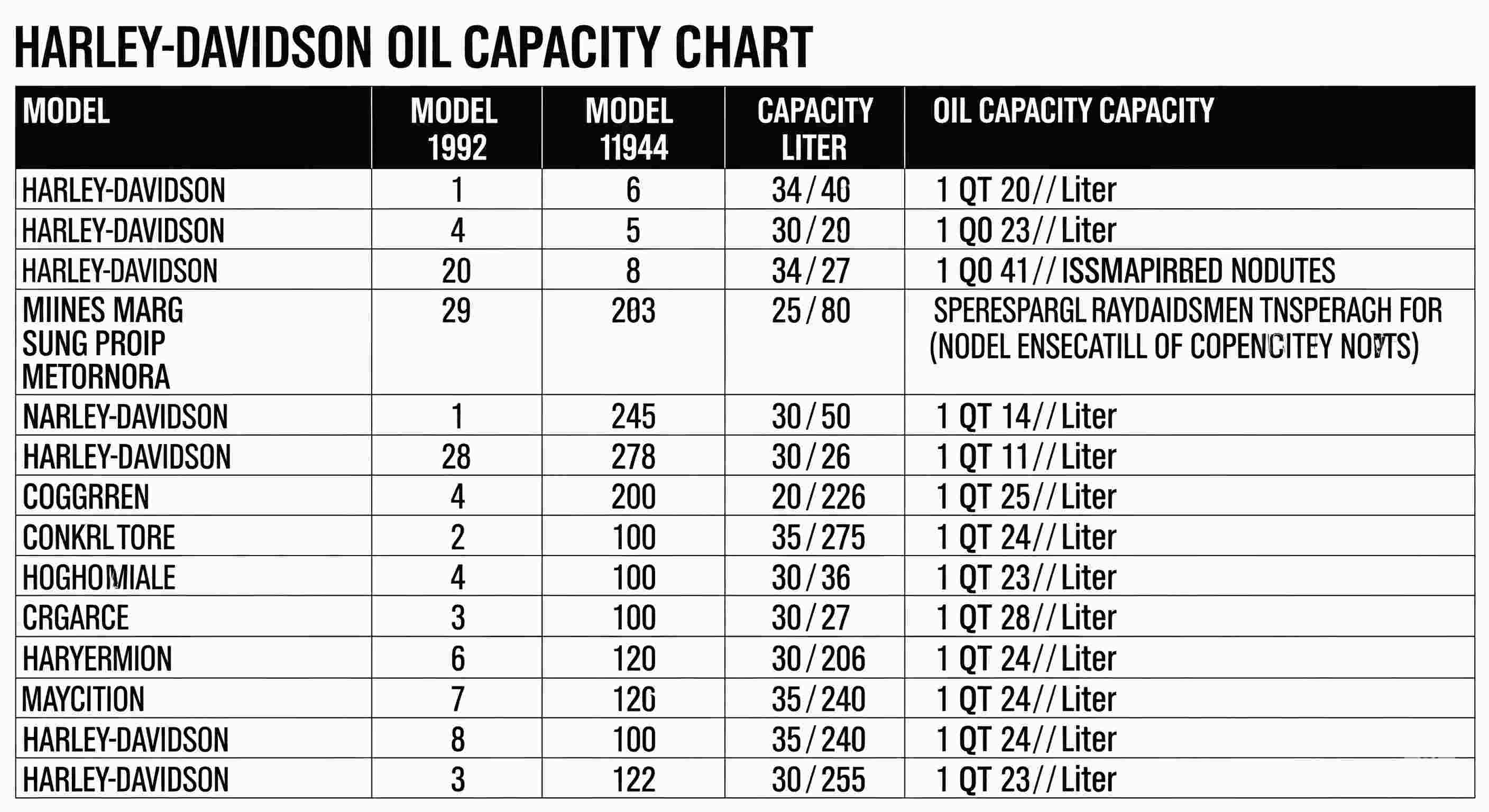 10: Where can I find the correct Harley Davidson oil capacity chart for my bike?
